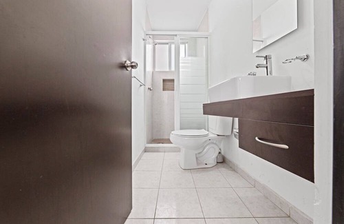 Enjoy comfort in our spacious apartment, just 15 minutes from the Historic Center. Ideal for 5 guests, it features two bedrooms: a master with a queen bed and balcony, and another with a bunk bed (double below, single above). Relax in the living room with an L-shaped sofa, Roku TV, and balcony. The fully equipped kitchen and dining area for six also have balcony access. Additionally, it includes a service room with washer/dryer and private parking. Perfectly located to explore Mexico City.