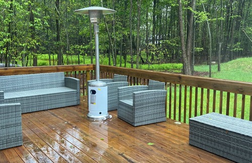 Discover the beauty of Big Bass Lake from this 4-bedroom house. Each bedroom features a queen bed, ensuring a comfortable stay for all guests. With 3 bathrooms equipped with both showers and bathtubs, convenience is key. The additional living room space with a futon provides a brilliant spot for relaxation. We look forward to hosting you at our place.