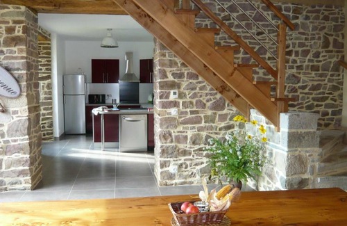 Detached house. Ground floor: Kitchen. Utility room. Living room. WC. On the 1st floor: Bedroom 1 (3 beds 90x[hidden]. Bedroom 2 (bed [hidden]x[hidden] and bedroom 3 (bed [hidden]x[hidden] and a sofa bed [hidden]x[hidden]. Shower room. Bathroom. WC. On the 2nd floor: large mezzanine under the roof (relaxation area). Cot and high chair on request. TV. DVD. Hifi. Internet access. Washing machine. Dishwasher. Electric heating (underfloor for the ground floor) at an additional cost. Sheets and towels for hire. Cleaning service at an additional cost. Private unfenced grounds. Garden furniture, sun loungers. Barbecue. Parking. In the pretty Normandy countryside, this 16th century farmhouse is remarkable. With its pond, orchards and tranquility, it invites you to relax. It is in an old stone and mass barn (traditional earth and straw technique) that the owners have set up a spacious family gîte. Bathed in light with its large openings, the living room in lime hemp coating is particularly appreciated. A beautiful Norman wardrobe crosses a contemporary staircase in solid elm. It is a room conducive to moments of sharing. The escapades in the Coutances region are numerous and varied (Le havre de la Vanlée, the Abbaye de Hambye, the Pointe d'Agon, the Coutances cathedral...).