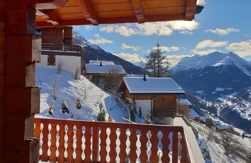 Spacious, family-friendly chalet, ideal for 10 people, with terrace, furnished balcony, garden with a magnificent view of the imperial crown and the Matterhorn.Inside: on 3 floorsEntrance hall, warm living room with fireplace, dining area, mezzanine with TV and relaxation area.Rooms:4 bedrooms with 2 single beds, easy to combine into a double bed (single and double duvets available)1 bedroom with bunk beds2 cots availableHealth:1 bathroom with bath/shower, 1 bathroom with shower and 1 shower in a 2-bed bedroom.2 separate toiletsLaundry room with washing machine and dryerFully equipped open kitchen:Induction, oven, microwave, dishwasher, fridge, freezer, Nespresso machine and filter, raclette and fondue machines, toaster, blender, airfryer, fryer, food warmer.Miscellaneous equipment:Electric underfloor heating and radiators, Swisscom TV, Blu-ray player, Chromecast, Wi-Fi, Sonos speaker, board games, sleigh, swings, printer, barbecue. Ski room with heating for ski boots.Exterior:2 garages + 1 parking space, large terrace with garden furniture, balconies, garden (garden furniture available).diverse:Pets not allowed.Private access (snow chains recommended in winter or 4x4).Freedom Pass included (May to November) – Privileged access to the ski lifts and activities in the Val d'Anniveirs; free access to cultural and heritage visits and free use of public transport (CarPostal). -- -- -- Final Cleaning: Normal cleaning is included in the rental price. -- -- Available Kitchen Towels: Can be rented from the agency. -- -- Available Bath Towels: Can be rented from the agency. -- -- Bedsheets: -- Can be rented from the agency. -- -- Parking: 2 garages (2 x 1 car) + 1 outdoor parking space -- -- Caution: A deposit of CHF 500.00 by credit card is required. -- -- Cancellation Insurance: Included in the rental price for cancellation in case of force majeure (medical certificate). -- -- Administrative Costs: None -- -- Pets : According to description -- -- Tourist Tax: Included in the rental price. --