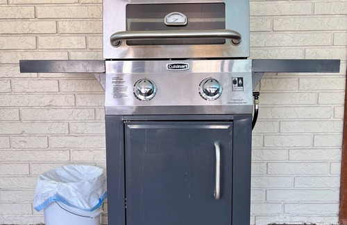Our traditional Spanish-style large family home is two full homes in one but completely separated by the large laundry room with two doors. We are offering the larger side, which contains three bedrooms, three full baths, living room, den, dining room, kitchen, and laundry room, none of which is shared with anyone including my husband and myself. Outside on the 900+ sq. ft. screened-in porch is a living area with two couches and a big-screen tv, a ping pong table, a cornhole game and other games for our guests. Also a gas grill is provided. The pool is over10 feet deep and has a diving board. We live in the separate, smaller side of the home, but you will not know we're here unless you need something!