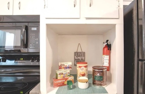 NOTE: The microwave oven in the cabinet is currently out of service. However, another microwave is available for your use at the property.