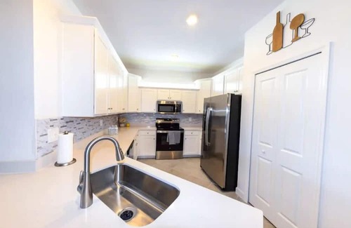 Nestled in Lehigh Acres, this delightful villa features 2 queen bedrooms, 2 bathrooms with a bathtub and shower, and a cozy living room with a sofa bed. Guests can enjoy amenities like an iron, AC, washing machine, heating, hair dryer, and WiFi during their stay. We think our place will help you experience everything Lehigh Acres has to offer.
