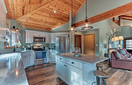- Amenities include a fully equipped kitchen, Keurig, free WiFi, a wood-burning stove, fresh linens and towels, central air conditioning and heat, furnished patio with outdoor kitchen including gas grill and bar, furnished deck, outdoor fire pit, treehouse with swings, and 4-car driveway, and much more