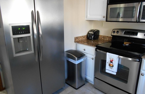 Spacious (1,511 sq ft.) great natural light & energy. 3 Bedrooms, 2 Bath + Private Office (3rd Bed) w/sleeper sofa, Desk & TV. Open Plan single story/no stairs patio home w/ vaulted ceilings, 4 Solar tubes to bathe it in light. The Kitchen (fully loaded) with newer S.S. appliances. It lives more like a single family home than any condo. Two living areas have large TV's (Great Room & Den). Two Bedrooms (1 King & 1 Queen), 2 full baths, a 3rd Bedroom set up as a Den/Office. Three new HD TV's (50''/Great room, 42" Master'', 42" Roku TV in Den). The Den has a desk w/ WIFI, TV, sleeper sofa & lounge chair. It is a 2nd living room. Enjoy the large covered patio where you can enjoy drinks, use our grill, dine or just relax or read on the comfortable love seat & lounge chairs. The High Efficiency washer/dryer make doing laundry an easy task. Your car will have an assigned Covered Carport (no garage) and there is plenty of additional parking, but you may not need any car much as you will be walking distance to all downtown from this location. For more info go to our personal web is arizona vacation rental properties dot com. This is a small, very quiet & safe (non transient) complex of Full Time Owners. Pool & Spa 50' from your door. 1 Dog friendly (under 50 lbs.). Location is on Gunsight Dr & Chama in Wahinda Casitas complex. See other property vrbo # 449510 Minimum 30 day rental required, if you are looking to stay shorter or longer please let me know and we will do our best to accommodate here or with our other properties. This home will be cleaned and managed to hotel standards. In most cases we conduct a personal check in at the property to make you are comfortable about finding your way around the home. Somebody will be on call during your stay to answer questions or to solve any unforeseen issues. We live a block away not in another time zone.