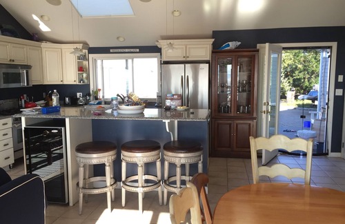 Home boasts a separate detached guest cottage gut renovated in 2022 which features 2 sets of bunk-beds and 2 twin beds sleeping 6 children on the main level, and a Queen Pull-Out Sofa on the 2nd Floor. The Cottage adds a sun splashed 2nd floor with a full kitchen, dining area, large TV area with 180 degree views of the water. Cottage is perfect spot to jettison children, or for your grandparents, in-laws, or a separate family to share the rental.