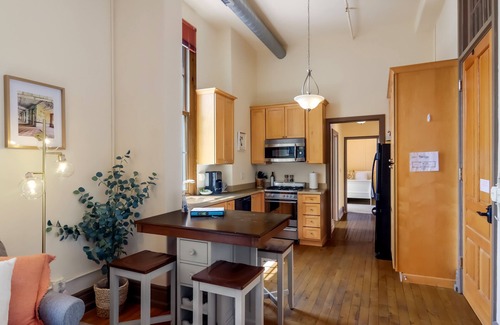 This super cute and squeaky clean one bedroom , one bath with pullout couch is perfect for your next Traverse City vacation! Located in the village of the Grand Traverse Commons boasting with boutique shops, eateries, brew pubs and wineries. This historic and completely renovated Old State Hospital has so much to offer! Right out the door you can hop on one of the miles and miles of hiking trails through the protected forest. ....Keep a keen eye out to see the all the hidden fairy houses :) There will be afternoon outdoor music on certain days in the open space, farmers market and bocce ball as well. The open space offers picnic tables for anyone to use for eating or relaxing.