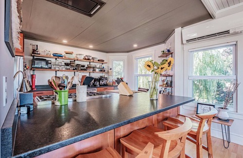 Windows with massive water & city views from the kitchen, dining and living areas, and 360 degrees from your private roof deck. Enjoy Portland`s bustling harbor over your morning joe or evening glass of wine. Stroll the East End, w/our gorgeous Eastern Promenade, excellent restaurants, grocers, baked goods, coffee. Take a short walk downtown to shop in the Old Port, and choose from all of Portland`s award-winning restaurants. Like to cook? Fully equipped kitchen!