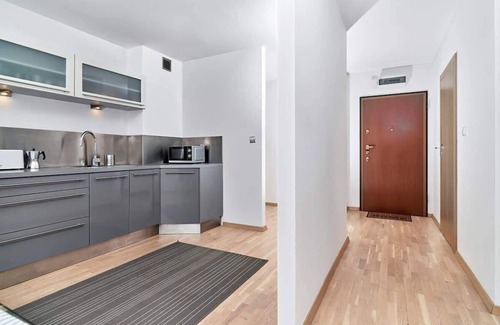 This amazing, modern apartment is located at Spiżowa Street in Wrocław, 2 km from the Old Town. The accommodation is perfectly communicated with other districts – the Market Square can be reached in 20 minutes by using the public transport. At the same time, the neighborhood is peaceful and quiet, away from the noise of the strict city center. The area can fulfill all daily needs thanks to local shopping and services infrastructure. The apartment is within 2 km radius from two shopping centers: Tarasy Grabiszyńskie and the Sky Tower mall with a viewpoint on the top of the highest Wrocław skyscraper. The proximity of extensive greenery of Grabiszyński Park with a children playground, a fitness trail and a mini-golf course is a great opportunity for outdoor fun in nature. The Main Railway Station is a 10-minute drive away from the apartment, and the Wrocław airport – 25 minutes.