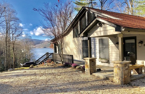 Come stay at beautiful Splendor Cove Retreat, your luxury home on Lake Glenville awaits. Lake Glenville marries the best of the mountains and lake life. It is a beautiful pristine mountain lake which is fed by 3 impressive waterfalls. This home boasts a private dock, huge yard for many fun filled days, kayaks, canoe, fishing gear, stream on the property, fire pit and is conveniently located on the east side of the lake just 6 miles from Cashiers. Highlands is also a short 20 minute drive away. The home is beautifully furnished, has granite countertops, stainless appliances and stunning stone fireplace. Bring your own boat or rent a boat and park it at the home’s dock.