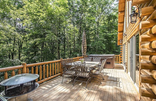 4 bedrooms and 3 baths, truly a luxury experience. First floor boasts kitchen with granite countertops, 8 person dining table and an entire wall of windows overlooking a gorgeous wooded ravine. You can't help but relax in the hot tub as you enjoy the scenery. Walk out lower is sure to entertain all ages of guests and includes a bar witbh refrigerator and game machine, pool table, dart board and big screen TV with video library. We have a Ring doorbell to protect the property when vacant.