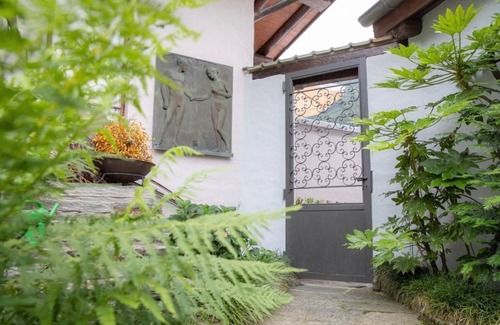 The 'Studio' holiday home is located in a part of our property that once belonged to an eclectic artist. The house is located in the centre of Maggia, has a common entrance through the rose garden with the 'Atelier' holiday home, a large private terrace and a view of the mountains. From the house it is only a few minutes' walk to the village's main square, bars and restaurants, bakery, supermarket, post office, bank, doctor's office, pharmacy, the Maggia river and its beaches. The style is rustic: wood, stone, local granite. Our recent conservative restoration was deliberately low environmental impact and paid particular attention to the use of environmentally and health-friendly materials. The studio is cosy and comfortable, with attention to detail. The open kitchen has an oven, dishwasher, refrigerator and ceramic hob. There are also various small appliances available such as: capsule and filter coffee machine, kettle, toaster.