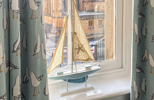 Bathroom: Cubicle Shower, Bath, Toilet. Gas central heating, electricity, bed linen, towels and Wi-Fi included. Travel cot and highchair available on request.. On-road parking, 1 permit provided. No smoking.. You are in an ideal position to enjoy all the attractions in Whitby, including the golden beach which is less than a 10-minute walk away. Stepping inside Stanton House the communal staircase leads you up to the first-floor apartment. Your private hallway leads you into the beautifully presented open plan living area, here you have large floor to ceiling bay windows bathing the room in light, as well as giving guests a glimpse of the sea, as the cliff top is only a short distance from the row of these handsome Victorian townhouses. You also benefit from having the view of the gothic church opposite, plus the abbey views from the kitchen, so you are surrounded by inspirational sights.