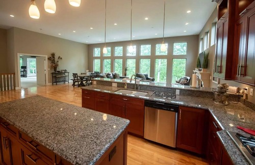 Huge accommodating home with walls of windows. You will feel like you are in the woods without being in the woods.