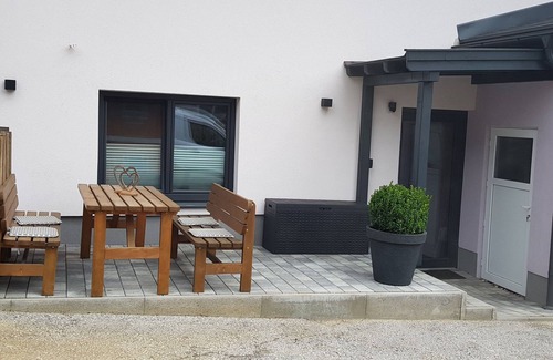 "Stefanie", 2-room apartment 45 m2, on the ground floor. Renovated in 2020, modern and cosy furnishings: living/sleeping room with 1 double sofabed, dining table and cable TV. 1 double bedroom with shower/WC. Kitchen (dishwasher, 4 ceramic glass hob hotplates, toaster, kettle, freezer). Sep. WC. Underfloor heating. Patio. Facilities: Internet (WiFi, free). When there are less than the maximum number of guests staying at the property, not all of the housing units will be available for use. 50622-091039-2020