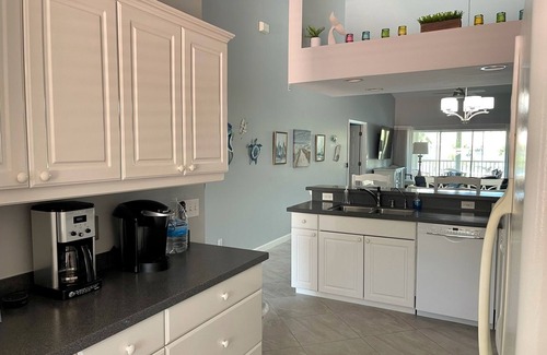 Wonderful and spacious condo on 2nd floor. Vaulted ceilings, open floor plan, beautiful, private lanai, spacious, clean, and inviting 2 bedroom/2 bathroom. The resort has a beautiful lazy river you can spend hours in. Tennis Courts/Pickleball, Lap Pool, Bocce Ball Court. A short drive to Marco Island or Naples's 5th Avenue area. Covered garage.