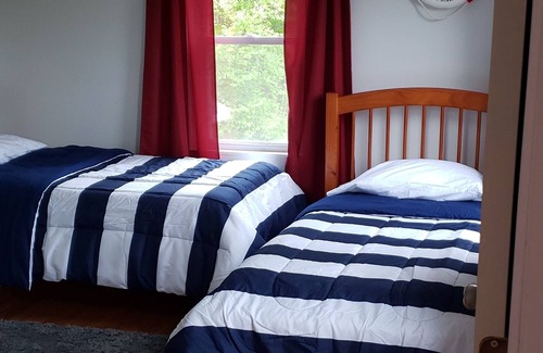 Guests will have access to three beautifully furnished bedrooms and two bathrooms. (One upstairs bedroom is locked and not available for guests use.) There are two bedrooms and a bathroom upstairs and one bedroom and bathroom downstairs.