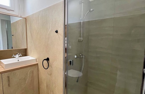Recently renovated, this cozy retreat boasts two comfortable bedrooms: one featuring a 160 cm double bed and a single bed, and the other with a convertible sofa that comfortably sleeps two, accommodating up to five guests.