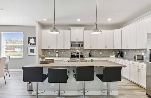 Spacious 6-bedroom, 5-bathroom home in Storey Lake Resort, just 15 minutes from Disney. Features private pool, 2 master suites, fully equipped kitchen, TV room, and modern living spaces. Guests enjoy resort amenities including clubhouse, fitness center, water park, game room, and 24-hour gated security. Perfect for families and groups seeking comfort, fun, and a prime Orlando location close to all major attractions.