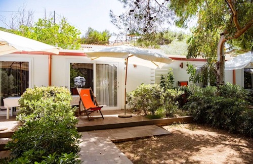 The Villette Mare are the newest and most modern solutions in the village, ideal for those of you seeking comfort and style just a few steps from the sea. Each villa, about 39 m², can accommodate up to 4 people and is located on the ground floor. The bright and well-kept interiors include a living area with kitchenette, double bed and sofa bed, as well as a private bathroom, air conditioning, TV, and Wi-Fi connection. Outside, a private patio allows you to relax in peace. Beach service, air conditioning, and bed linen are not included, but are available on request and for an additional fee.