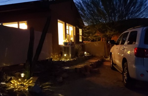 This Pristine Studio apartment is the best kept secret in Borrego Springs. Sports a private walled in private yard plus views forever. This is a studio that is attached to the Main House, separated by a solid sound door and both Main House And Studio may be rented together or separately. Great stargazing. Moon deck. Full kitchen and bath. Super clean new construction style living. The property sits on the edge of the Anza Borrego desert, near Borrego Springs, CA. It has A/C, a queen bed and looks to the north over some beautiful mountains. Huge front yard, almost an acre of mature growth shade and palm trees featuring a patio with beautiful outside fireplace. It is 5 minutes away from the Galleta Meadows sculptures, and less than 1/2 hour from Coyote Canyon, Palm Canyon and Fonts Point. The Salton Sea is about 1/2 an hour away, and the highlights of Salvation Mountain and the Mud Volcanoes are another 45 minutes from there.