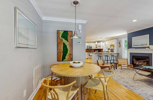The home is designed with comfort in mind, featuring a cozy living room with a gas fireplace and a sofa bed for extra guests. With central AC and modern amenities like WiFi, a fully equipped kitchen, and a dining area, you’ll feel right at home. Step outside to the deck where you can unwind with your morning coffee or enjoy a meal al fresco with patio furniture.