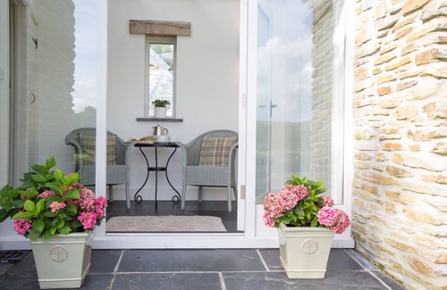 The ground floor bedroom has a king-sized bed and a large en suite wetroom whilst the upstairs bedroom has twin beds/super-king and its own bathroom with a stand-alone bath and a separate shower. Relax in front of the woodburner and take in the views through the large French doors or sit out on the private patio and enjoy your own lawn and enclosed.