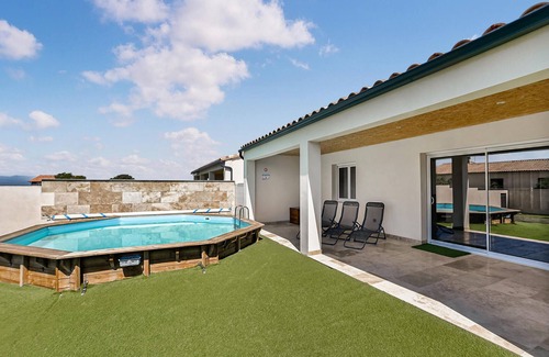 This pleasant house offers you all the necessary comfort for a relaxing vacation in the south of France. Feel at home here and enjoy the amenities that await you inside and in the garden. Look forward to large rooms and appealing furnishings that offer everything you need for a carefree vacation. Come together in the morning for a communal breakfast on the covered terrace and then enjoy a dip in the pool and watch your children play on the playground equipment and lawn.