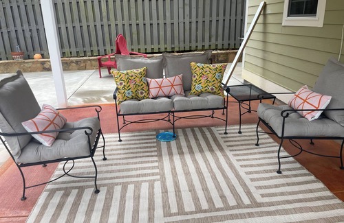 One king bed, one queen bed, and two full size beds. Three full bathrooms. Open floor plan. New appliances. Large yard. Neighborhood walking paths. Wi-Fi, Netflix, Hulu.