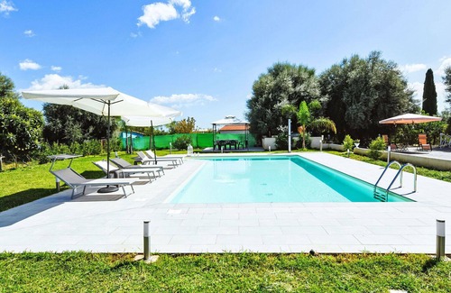 Nestled in the resort area of Floridia, Italy, just 3 km from the town center and 15 km from Siracusa, Villa "Giugiò" offers an idyllic vacation rental surrounded by lush greenery and a sunny ambiance. The private 1,200 m2 fenced property boasts a lush lawn, shady trees, and an inviting swimming pool (10 x 5 m, depth 120 - 140 cm) available seasonally from April 1st to October 31st. Enjoy the convenience of a shower/WC in the pool area, an outdoor shower, a basketball court, garden furniture, and a barbecue area. Internet Wifi, parking at the house, and heating (available from December 1st to March 31st) ensure your utmost comfort.
