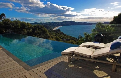 Stunning, sunny Cape Cod hilltop retreat - beautiful pool and sweeping gardens | House in Onetangi, New Zealand