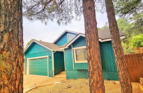 Tucked among the whispering pines and painted a cheerful teal, this cozy 3-bedroom, 2-bath retreat is your perfect home base for adventure, relaxation, or remote work.