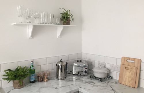 The Courtyard is a stylish hideaway for two, moments from Mousehole’s beautiful harbour. This completely renovated former fisherman’s cottage has been stunningly furnished with a mix of modern and vintage finds along with a few antique treasures. The subtle muted decor creates a relaxed atmosphere whilst throughout the focus is firmly on understated luxury. In the spacious bathroom there is a deep roll-top bath, separate power-shower enclosure, underfloor heating and lots of thick, fluffy, white towels. The bedroom has a king-size bed, 400 thread count White Company bedding, antique chandelier, and spacious wardrobe with iron/ironing board and plenty of hanging space. The kitchen is equipped with a Nespresso coffee machine, cafetiere, Dualit and Neff appliances, induction hob and cooker, fridge, dishwasher and washing machine. There is also a dining table for two. The lounge is furnished with carefully sourced pieces such as a large mirror from France, a vintage leather club chair, new comfy sofa and a cosy wood-burner for chilly nights. Outside the pretty plant-filled courtyard is the perfect place for a morning coffee or for a glass of something chilled as sun goes down.