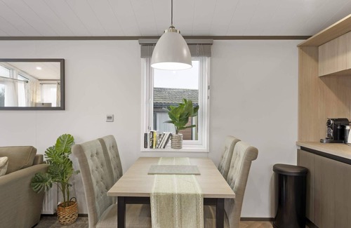 This brand-new 2-bedroom holiday lodge near Ilfracombe may be compact, but it’s packed with luxury. Featuring high-spec fittings throughout, it offers a king-size bedroom with ensuite, a twin room, and a shared bathroom. The open-plan kitchen, dining, and living area are well-equipped with modern appliances, a smart TV, and a cosy gas fireplace. In warmer months, relax on the decking with outdoor seating. Private parking for 2 vehicles ensures a stress-free stay.