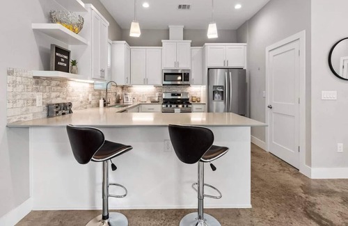 Experience Austin like a local in our stunning new construction, 1155 sq ft modern home. As 8-year Superhosts, we pride ourselves on offering 5-star service and clear communication. Enjoy the convenience of easy self check-in with a keypad, the privacy of a fully-fenced backyard and long, private driveway, as well as contemporary chic aesthetic.