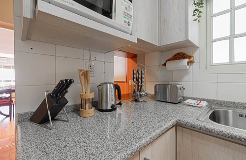 Stylish retreat in Las Cañitas, Buenos Aires. Trendy restaurants nearby. Renovated 100m2 2-bedroom apartment for 4 guests. Elegant dining, bright living, balcony with views. Comfy beds, AC in every room. Safe, fully equipped kitchen. Perfect urban oasis!