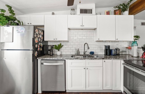 Escape to a stylish 3 bedroom, 2 bath St. Pete retreat just minutes from the beach and downtown’s vibrant nightlife and restaurant scene. Unwind under string lights in a private tropical yard with cozy seating, fire pit, outdoor shower and TV. Perfect for peaceful getaways, this beach-inspired space is ideal for couples, small families, or remote work. Relax, recharge, and experience the best of St. Pete’s sun, surf, and city vibes.