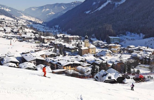 Saalbach: Including breakfast! Offers this modern, comfortable resort "Saalbach Suites by AlpsResorts". 4 km from the centre of Saalbach, directly by the skiing area. In the complex: sauna, fitness room, steam room, relaxation room, central heating system. Breakfast (included). Parking at the house. Supermarket 3 km, restaurant 4 km, railway station "Maishofen" 10 km, outdoor swimming pool 4 km. Golf course (18 hole) 19 km, gondola lift 500 m, skisport facilities, ski school 500 m. Nearby attractions: Freibad Käpt’n Hook. Well-known ski regions can easily be reached: Saalbach-Hinterglemm Home of Lässig. Please note: ski bus (free of charge). Free ski bus service to the ski region Saalbach. In case of good snow conditions, the house is accessible on skis. The photo is just an example. The holiday properties may differ in living space, floorplan, equipment and furnishing. Thanks to the included JOKER CARD, you can enjoy numerous free services in the Saalbach Hinterglemm region from May to October.