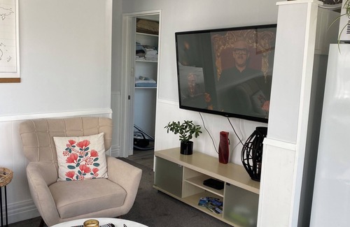 Spacious flat with full kitchen, dining area, lounge, 1 bedroom and large bathroom with laundry. 5 minute walk to town shops, supermarket and Motueka Sunday market. 1 block from Motueka Quay. 12 minutes drive to the golden sands of Kaiteriteri beach. 15 minutes drive to the Abel Tasman National Park.