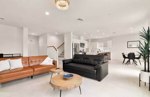 The large chef’s kitchen is fully equipped with top-of-the-line appliances, 4 barstools, and a 6-seat dining room table that makes serving meals a breeze. After meals, the family can flow effortlessly into the luxurious backyard, which features an outdoor dining area and a BBQ. All the rooms are located on the upper level which is perfect for getting everyone ready for bedtime. The attached garage fits 2 cars, the oversized driveway fits 2 more, and there is available street parking in the quiet cul-de-sac. This is the perfect hub for a family looking to take a break from the hustle and bustle. Let us help make your San Diego vacation one to remember!