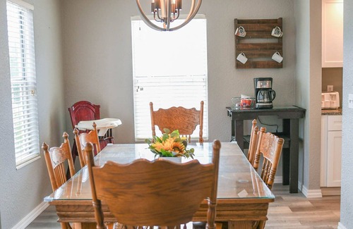 Relax with your family in this recently updated 1800-square-foot property with a 3-season sunroom overlooking a beautiful water feature (seasonal). The condo has a spacious living room with a 55-inch TV, a stunning kitchen with granite countertops, and a separate dining room. Each bedroom features a flat-screen TV, a ceiling fan, and an en-suite bathroom. The unit is located on the second floor and requires climbing a flight of stairs to access the main floor. The main floor bedrooms have king beds. There is a queen bed in the open loft bedroom as well as 2 roll-away beds. This is a great area for kids! Additionally, the upstairs bedroom features a dedicated work space, complete with a writing desk, an office chair, and a desk lamp. There is also a rocker/glider, highchair, baby gate, and pack 'n play for the little ones. Spend time as a family playing with the provided board games, enjoy morning coffee in the sunroom, or curl up with one of the provided books on the sofa! The unit is well-stocked with the essentials required for your stay, including toilet paper, paper towels, trash bags, soap, shampoo, conditioner, laundry detergent, dish soap, and more.