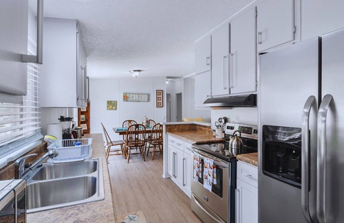 Come relax at Jodi's Hideaway! This cozy home is situated on the mainland in Sunset Beach just 5 to 7 minutes to the Sunset Beach bridge. It boasts an all-seasons room, perfect for casual dining in the evenings, or enjoying morning coffee. Once you enter the home, you are welcomed by an open concept living, dining, and kitchen area. Just off the dining room, the sliding doors make the back deck easily accessible. The living space and bedrooms have been adorned with costal decor, and truly allude to that beachy feeling. If you are looking to stay at beautiful Sunset Beach but would like a bit more privacy away from the summer hustle and bustle, this is the place for you! Internet service provided. Smart TVs for guest to log in and stream on their personal favorite streaming apps.