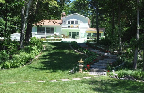 Stunning sunsets and lovely breezes accompany this 7 bedroom, 5 bathroom executive home with AC,on 140 feet of Torch lake. There is WIFI throughout the home, central AC and TV and DVDs in each bedroom as well as the dining and living room.