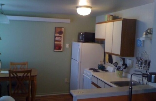 Two bedroom/ TWO full baths (yep, TWO); lusciously comfortable & relaxing space. Air Conditioned. Wi-Fi. Centrally located in the Beautiful Black Hills, close to all local area attractions. See the sights all day and come back and you are only a short and wonderful walk to shop & dining (who wants to cook on vacation?) if you do, we have a new grill and well stocked kitchen at your disposal. Don't miss the atmosphere this location offers...it truly is the best of both worlds!