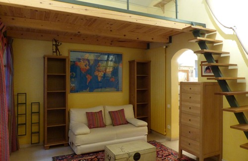 The second "la jaune" with two beds, one on a 140 x 200 mezzanine, and a very comfortable convertible bed in the 140 x 190 bedroom, bathroom, TV.