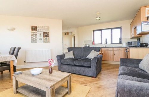Surfside, on the outskirts of Marazion - Cornwalls oldest chartered town - is a delightful, purpose built holiday home close to Penzance. Marazion is home to two sandy beaches, many good food pubs, shops, galleries and an antiques emporium. Sleeping up to four guests, there are two calming and stylish bedrooms and a family bathroom, a modern and uncluttered interior that is open plan with comfy leather sofas, a modern kitchen and dining table. Outside is a patio area and designated parking within landscaped grounds. This is an ideal choice of holiday home for families and friends alike who will really appreciate the close proximity to the ocean mere moments away. Note: This group of properties are situated 35m from the Penzance to Redruth railway line.