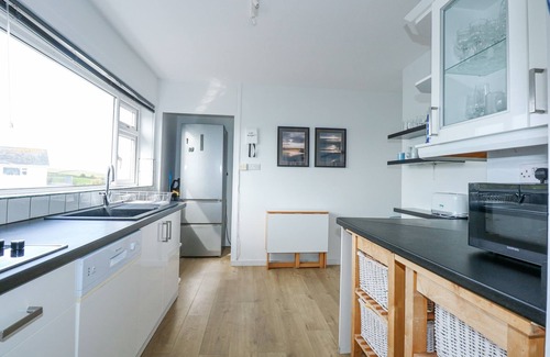 Amenities: Electric storage heaters. Electric oven and hob, microwave, fridge/freezer, fridge, freezer, washing machine, tumble dryer and dishwasher. 1 x TV, 1 x TV with Freeview, DVD Player, CD Player, WiFi and selection of books. Fuel and power inc. in rent. Bed linen inc. in rent. Towels NOT inc. Off-road parking for 3 cars. Rear garden with lawn and furniture. Balcony with furniture. One well-behaved pet welcome. Sorry, no smoking. Shop 0.9 miles, pub 1.4 miles, beach 0.7 miles. Note: There is a Good Housekeeping Bond of £200. Note: The garden is not enclosed, please always supervise children and your pet when outside. Note: There are stone steps in the garden, please take care. Note: Check-in is from 4pm, check-out by 10am