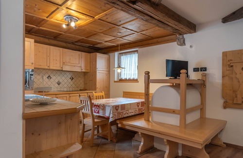 Have you thought about staying in an old mountain barn? With Tabia' Elisa your dreams can easily become reality!Nice apartment in a typical renovated mountain barn, located in the beautiful Campitello di Fassa, very central, convenient to all services (shops, supermarket, bars, restaurants)The apartment is located on the ground floor and is equipped with a kitchenette with dishwasher, ski/bicycle storage, double bedroom with Tyrolean bunk bed, outdoor parking space. The furnishings are refined, all aged solid wood, what a spectacle!THREE-ROOM APARTMENT SLEEPS 4:Ground floor apartment composed of a living room with kitchenette, a double bedroom with private bathroom, a bedroom with bunk bed, bathroom with window and shower, wifi,This house is also ideal for families with children: it is in fact far from the chaos of the town center, being positioned behind it.Haven't you booked this wonder yet? Hurry!!!