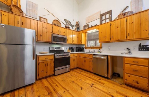 Inside, you'll find a warm and inviting living space featuring a gas fireplace for those chilly mountain evenings. The three bedrooms provide plenty of space for your family or group to spread out and relax.