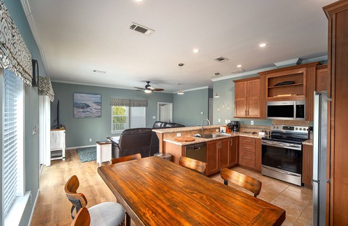 Enjoy the spacious great room and open deck with canal views. Comfortable living room furnishings and a table for 6. Tons of cabinets and new appliances in the roomy kitchen with breakfast bar. The primary bedroom features a king bed, flat-screen TV and an en-suite bath with double sinks, large shower and walk-in closet. The two guest bedrooms feature queen beds. The shared hall bath has a tub and shower. Separate laundry room.